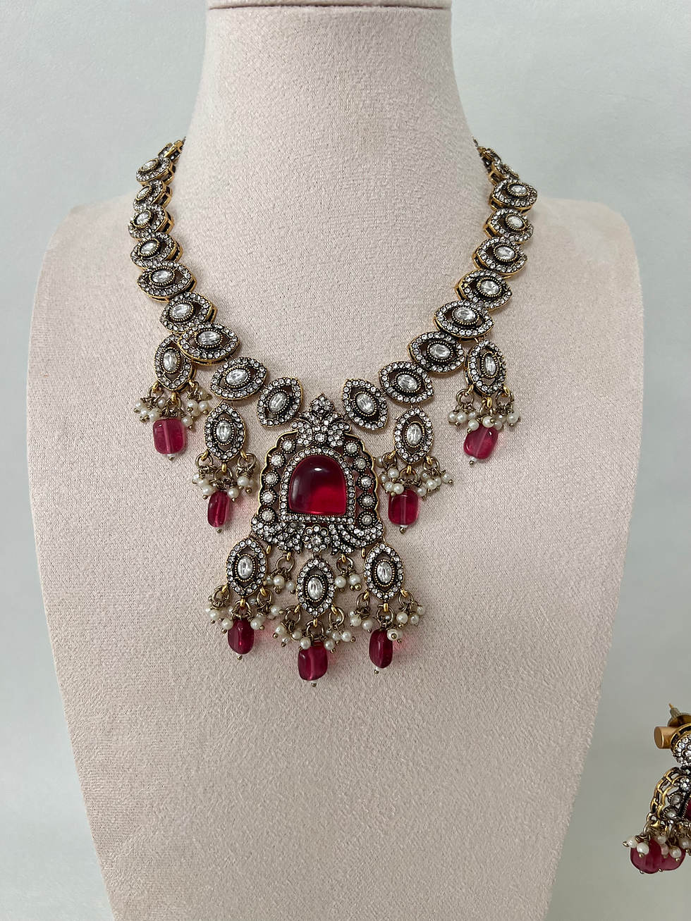 Silver Spark Ruby Necklace Bridal Set